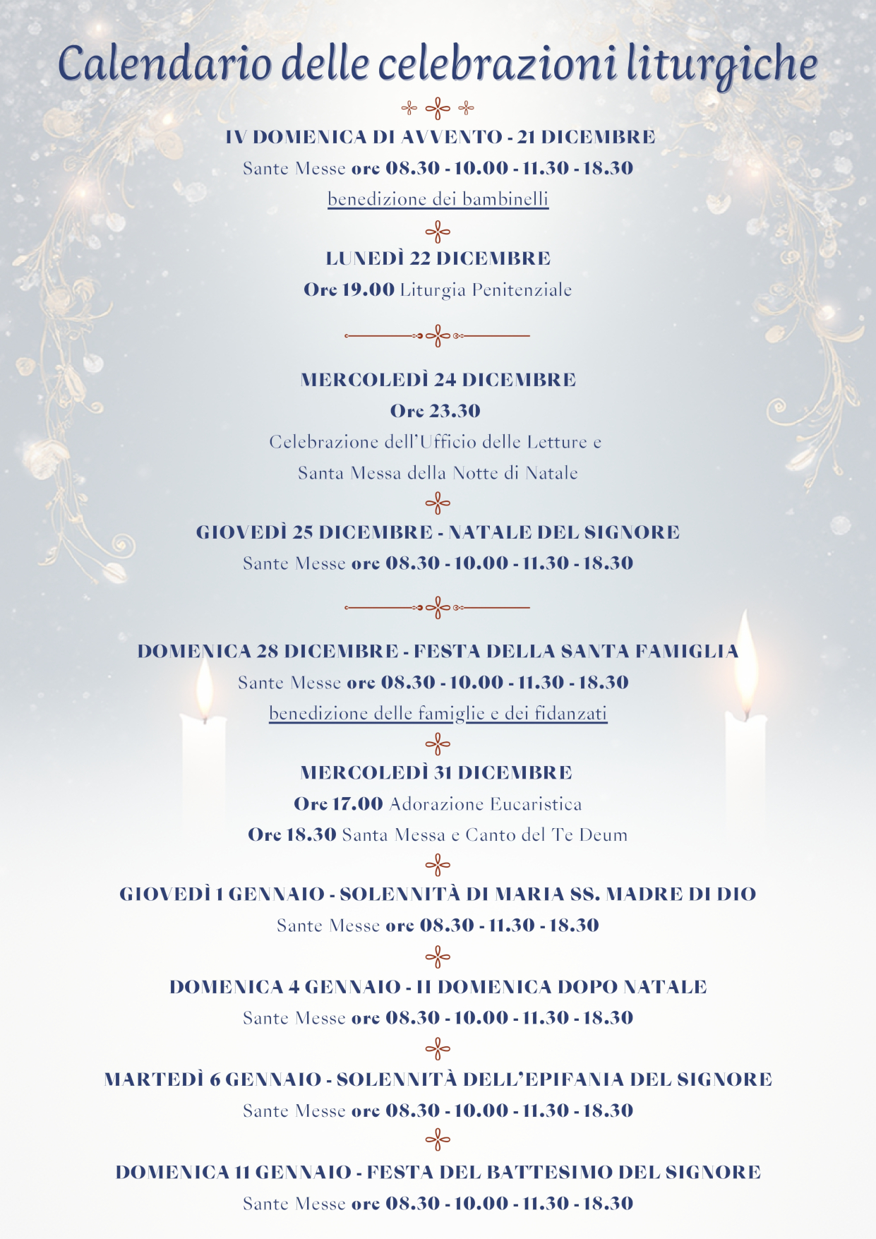 Calendario delle celebrazioni liturgiche